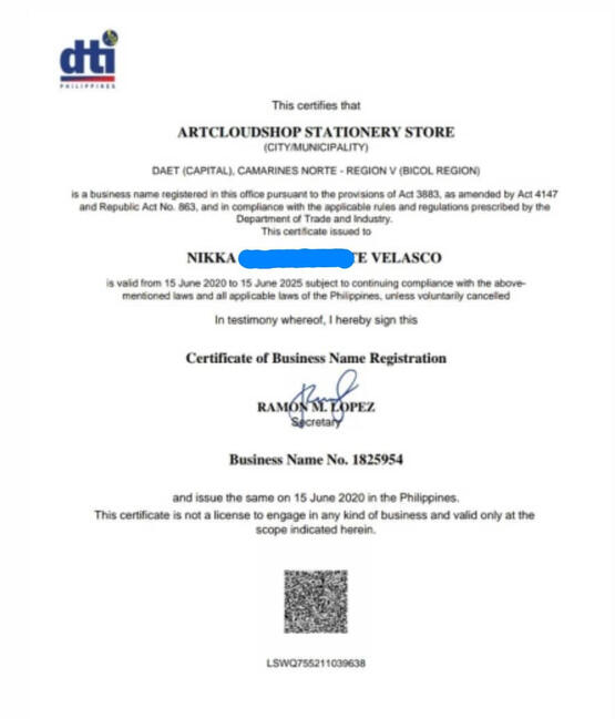 artcloudshop is DTI and BIR-registered!